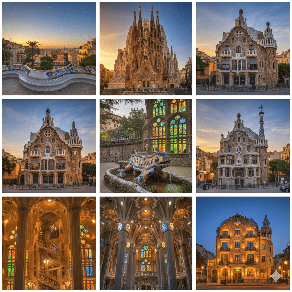 | 1 | κΉμ¬ λ°νΈμ (Casa BatllΓ³) | ‘λ°λ€’μ ‘μ©μ λΌ’λ₯Ό λͺ¨ν°λΈλ‘ ν ν격μ μΈ λ΄λΆ 곑μ λ―Έ κ°μ. | κ·ΈλΌμμ 거리 (Passeig de GrΓ cia) |