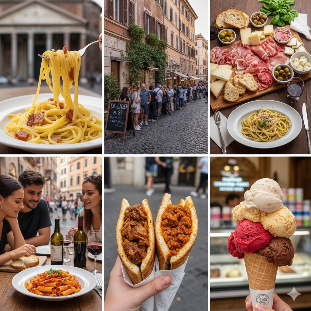 ๋ก๋ง ์ฌํ์ ์ฆ๊ฑฐ์์ ์ฝ๋ก์ธ์๊ณผ ๋ฐํฐ์นธ์ ์ ์ฅํ ์ ์ ์ง๋ฟ๋ง ์๋๋ผ, ์ง์ง ๋ก๋ง ์์(Cucina Romana)์ ๋ง๋ณด๋ ๋ฐ ์์ต๋๋ค. ๋ก๋ง ์์์ ์ดํ๋ฆฌ์ ์๋ฆฌ์ ๊ธฐ๋ณธ์ด์ง๋ง, ๋ค๋ฅธ ์ง์ญ๊ณผ๋ ํ์ฐํ ๊ตฌ๋ถ๋๋ ์ฌํํจ ์์ ๊น์ ๋ง๊ณผ ๊ฐ๋ ฌํ ์ฌ๋ฃ์ ์กฐํฉ์ด ํน์ง์ ๋๋ค.